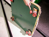 How to make your own camera dolly. You can make a simple camera dolly so your shots move smoothly through space just like the pros. All you need is two 10' lengths of 3" PVC pluming pipe, a 4' by 4' piece of 3/4" plywood and four sets of roller skate wheels. The wheels are secured to the plywood at all four corners, one set for each corner. I have used this same system on more than a dozen professional videos with great results.